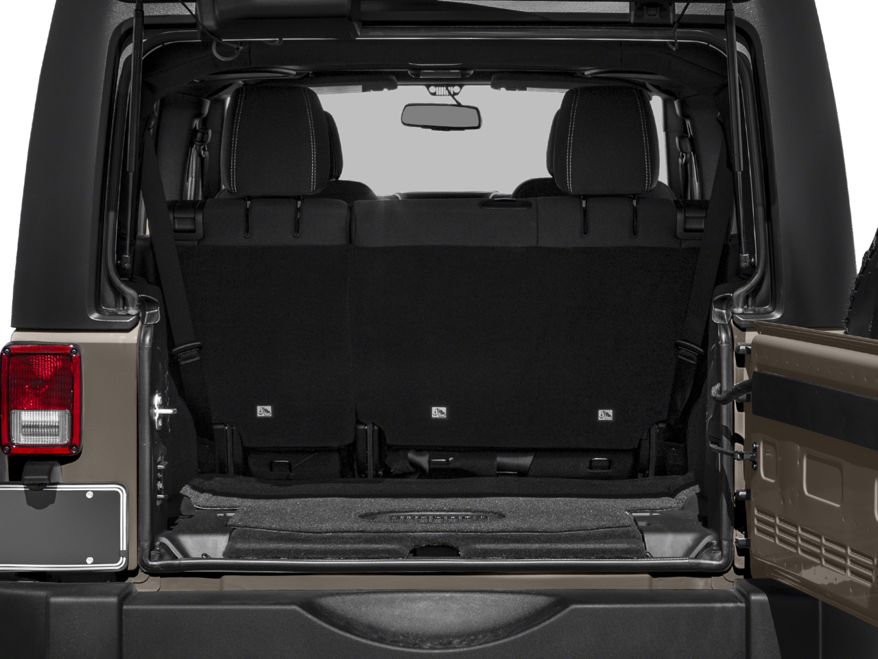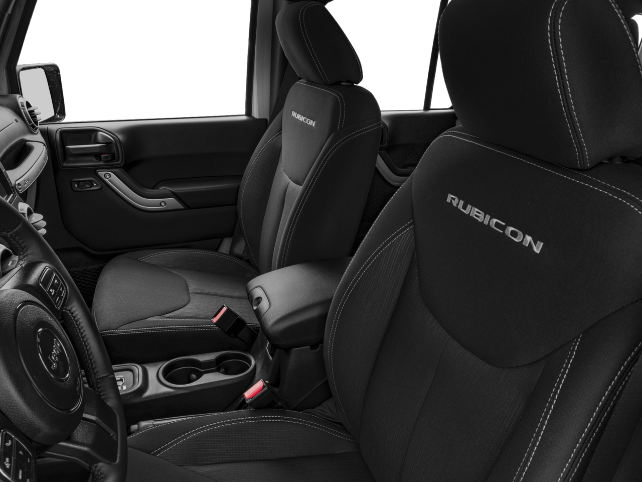 Exterior Rubicon-specific upgrades include durable off-road tires, heavy-duty axles, and suspension tuned for challenging terrain. The removable top and doors offer open-air freedom when the weather allows, and inside you'll find a practical, easy-to-clean interior designed for active lifestyles.