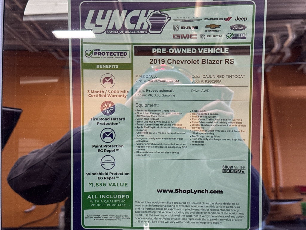 Discover this 2019 Chevrolet Blazer RS in Burlington, WI — a striking blend of style, performance, and technology at the best price. Powered by a robust 3.6L V6 gasoline engine and equipped with AWD, this Chevrolet Blazer delivers confident handling and energetic acceleration for highway cruising and Wisconsin winters. With only 27,650 miles, this low-mileage SUV offers long-term value and reliability for drivers seeking a premium crossover without the premium price.