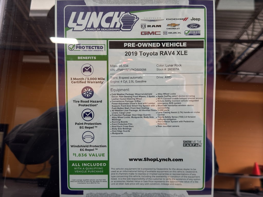 Schedule a test drive in Burlington, WI to experience the 2019 Toyota RAV4 XLE AWD firsthand. With its clean CARFAX history, safety tech, and comfort amenities, this Toyota RAV4 is an excellent pre-owned-SUV option that combines value, capability, and peace of mind.