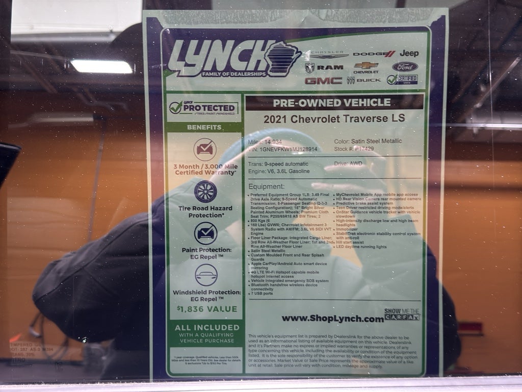 Contact the dealership in Burlington today to schedule a test drive or request a vehicle history report. Don't miss this chance to own a low-mileage 2021 Chevrolet Traverse LS at the best price.