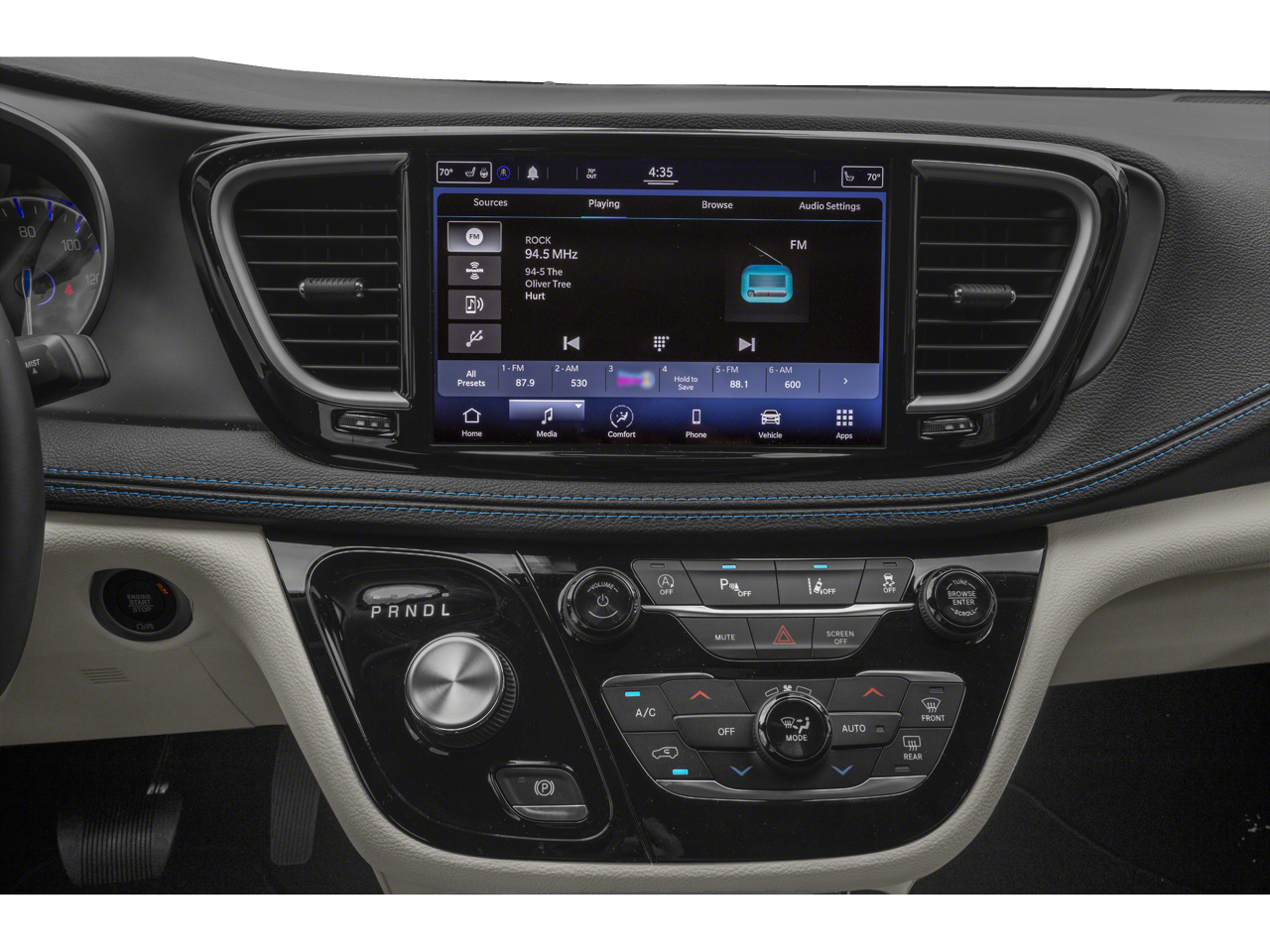 - Uconnect Theater Family Group: Video USB Port; Blu-Ray/DVD Player/USB Port; KeySense; 3-Channel Wireless Headphones (RF); 220 Amp Alternator; 1-Year Trial (registration Required); 4G LTE Wi-Fi Hot Spot; SiriusXM Guardian - Included Trial (B); Hands Free Sliding Doors; Hands Free Power Liftgate; High Definition Multimedia Interface; Stow N Vac Integrated Vacuum; 3-Channel Video Remote Control; Seatback Video Screens; 115V Auxiliary Power Outlet; Global Telematics Box Module; Heated Second Row Seats; Front/rear 1-Touch Up/down Power Windows; Famcam Interior Camera