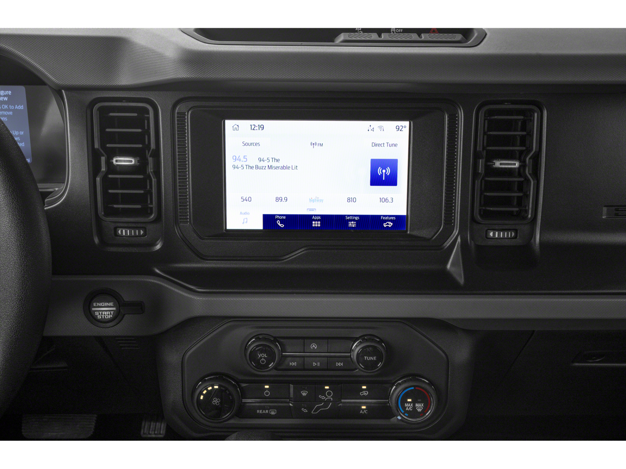 Equipment Group 322A Mid Package: 17" Black Gloss-Painted Steel Wheels; 4.46 Axle Ratio; Rear Parking Sensors; Power Outlet - Back Side of Center Floor Console; Front Row Heated Seats; Auto-Dimming Interior Rearview Mirror; Driver and Front Passenger Illuminated Sliding Visor Vanity Mirrors; AM/FM Stereo; Dual-Zone Electronic Automatic Temperature Control; Enhanced Voice Recognition; Connected Navigation; LT265/70R17 A/T Tires; Ambient Footwell Lighting; Remote Start System; Marine Grade Vinyl Bucket Seats; 2-Door Intelligent Access with Lock/unlock Sasquatch Package: High Clearance Fender Flares; High Clearance Suspension; Position-Sensitive Bilstein Shock Absorbers Ford Co-Pilot360: Auto High-Beam Headlamps; Rear View Camera; Pre-Collision Assist with Automatic Emergency Braking; Blind Spot Information System (BLIS); Lane-Keeping System Towing Capability Ford Performance Heavy-Duty Modular Front Bumper Front and Rear Floor Liners Without Carpet Floor Mats Keyless Entry Keypad **Equipment listed is based on original vehicle build and subject to change. Please confirm the accuracy of the included equipment by calling the dealer prior to purchase.**