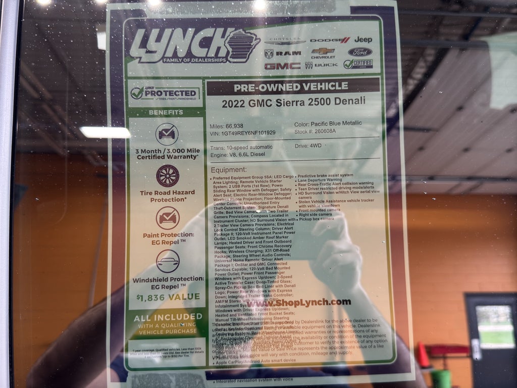Discover this exceptional 2022 GMC Sierra 2500 Denali 4WD, a premium heavy-duty pickup located in Burlington, WI. Powered by a robust 6.6L V8 Duramax diesel, this GMC Sierra delivers impressive towing capability, strong low-end torque and reliable long-distance performance for demanding work or weekend adventures. The Denali trim combines rugged capability with upscale comfort, featuring a refined interior, advanced technology and premium materials throughout.