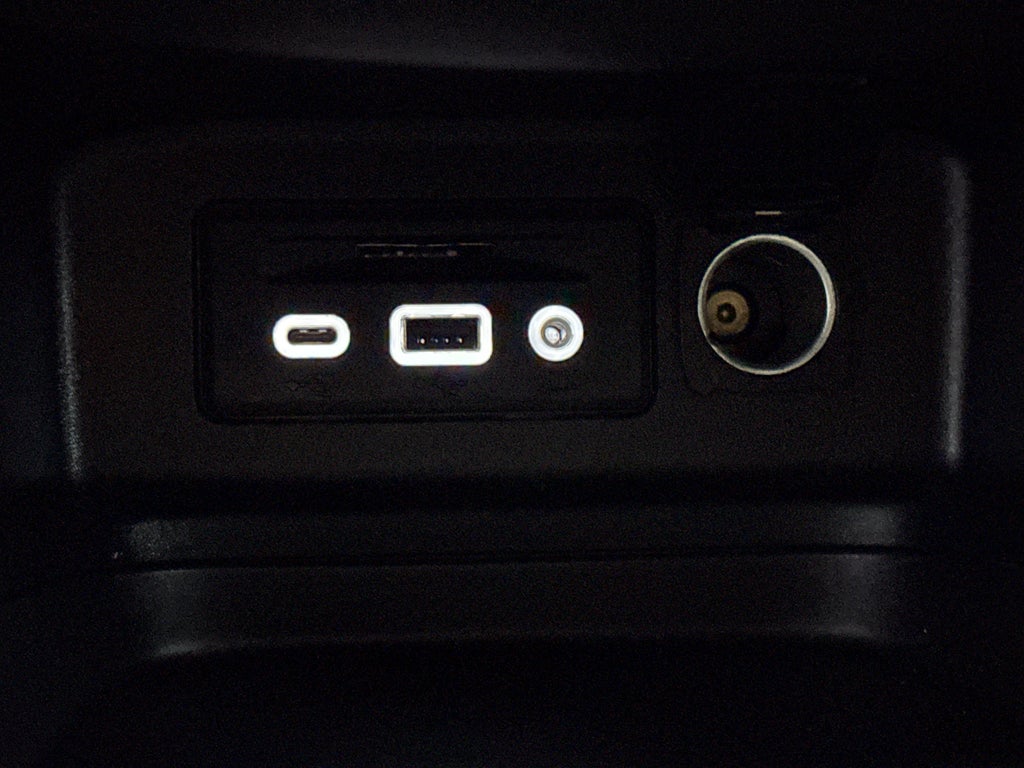 - 2 USB data ports2 with SD Card Reader and auxiliary input jack, located within front center storage bin